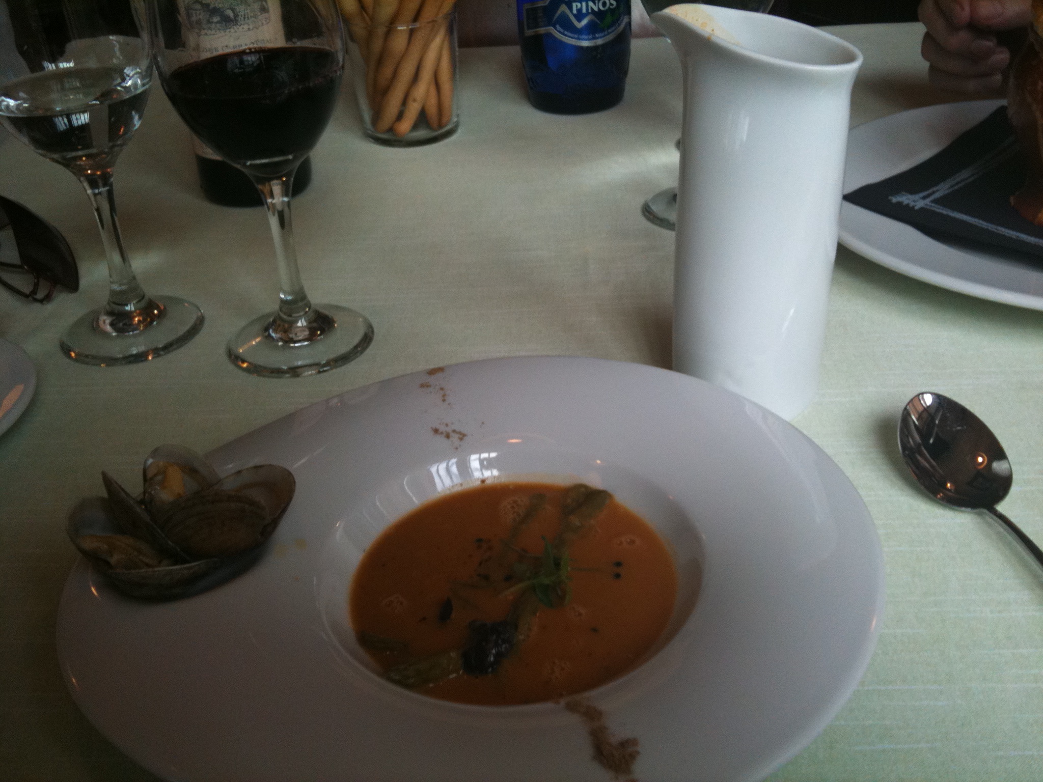 Sugerencia: dejar alguna gamba pelada para decorar la sopa, decorar con unos hilitos de nata.