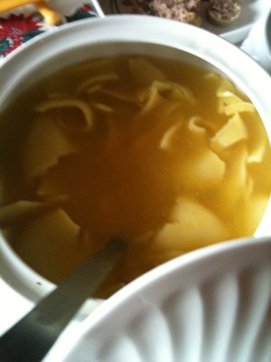 Poner a calentar el caldo y, cuando hierva, añadir los fideos y un puñado de cominos enteros. Tres minutos antes de terminara de cocerse la pasta, incorporar cuatro o cinco cucharadas de salsa de tomate. En el momento de apagar el fuego, añadir un buen puñado de queso rayado.